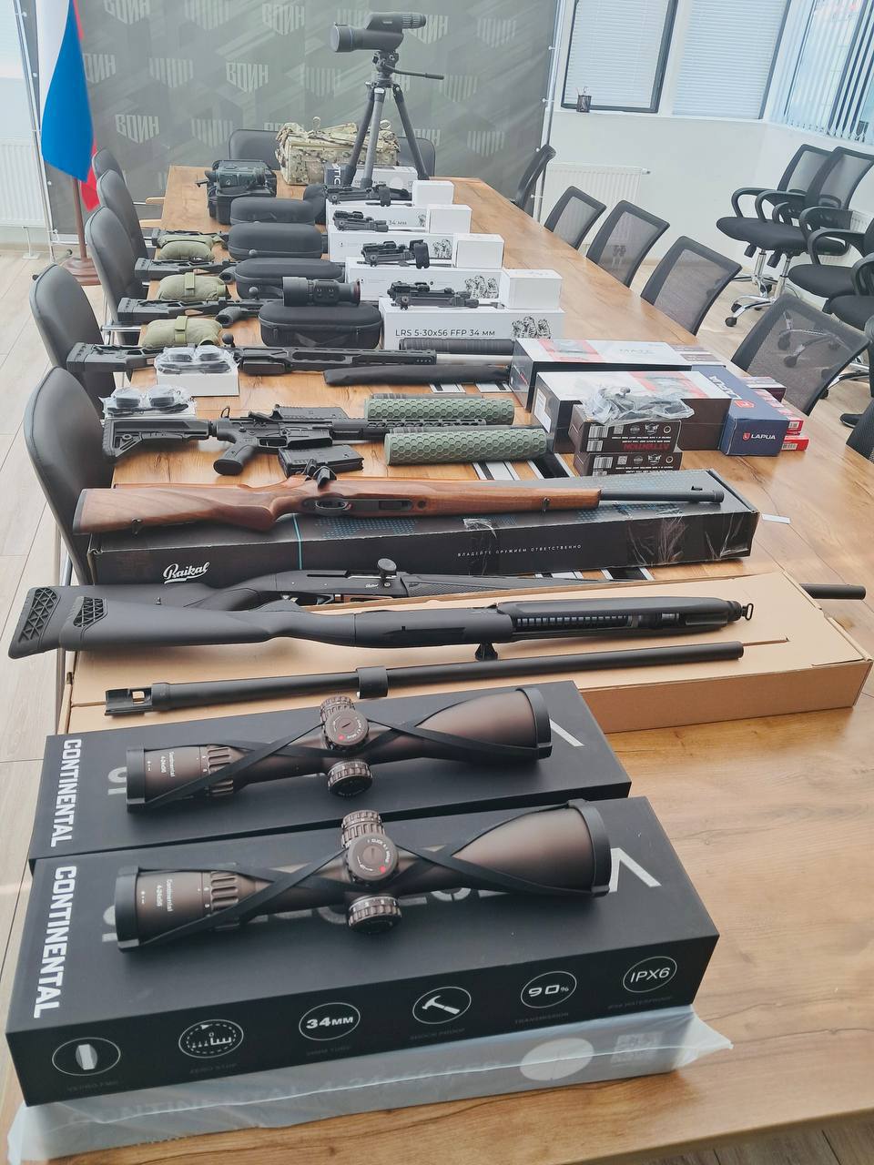 В Центре развития военно-спортивной подготовки и патриотического воспитания молодежи «ВОИН» состоялась церемония передачи снайперских винтовок, которые в ближайшее время отправятся в зону проведения специальной военной операции. Это уже вторая по счету акция поддержки бойцов СВО. Она реализуется в рамках совместной инициативы Центра «ВОИН», Федерации боевого снайпинга России и Минобороны России и при поддержке заместителя Председателя Правительства Российской Федерации — полпреда Президента Российской Федерации в Дальневосточном федеральном округе, Председателя Наблюдательного совета Центра «ВОИН» Юрия Трутнева. Напомним, в апреле на фронт отправились мультикалиберные снайперские винтовки и полуавтоматические винтовки.